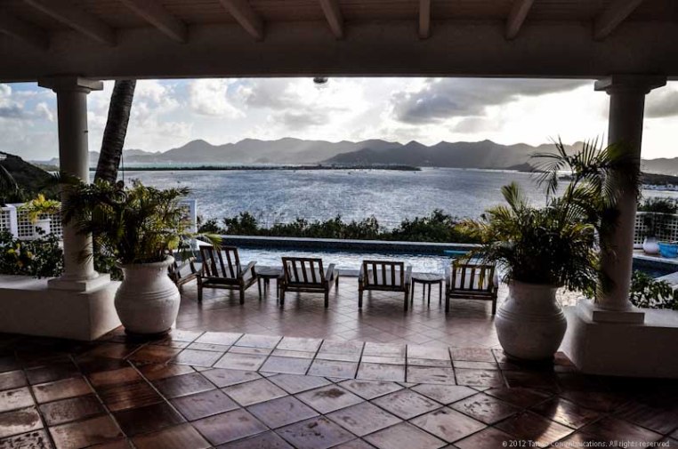 The view from the porch last February (2012) looking east over Simpson Bay toward the town of Marigot on the French side of St Martin. First sunrise of the trip.