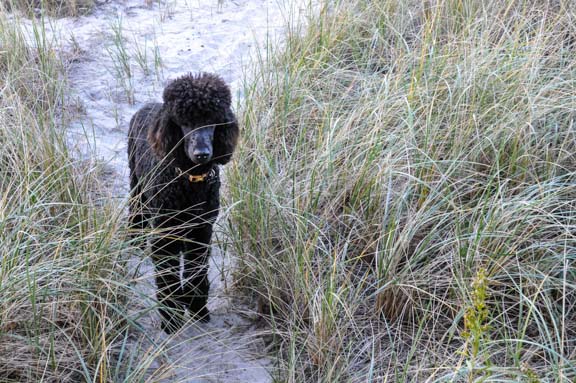 Update October 24, 2012 – I drove out to Wingaersheek Beach in Gloucester, MA to see my good friend Anne before she left for the sunny climes of Florida for the winter… and to see if Jack would enjoy his first time running on an open beach. Jack was most enthusiastic about the fine white sand along the path through the dunes… romping and playing, putting his nose in the sand and running back and forth. Then he reached the top of the dune hill where there is a steep set of stairs down to the beach below. I don’t know what he thought of the wide expanse of sand or the ocean beyond… but, he ran all the way back to the porch and no amount of persuasion would temp him to the stairs again. So we’ll have to try again when public beaches open to dogs in the off-season.